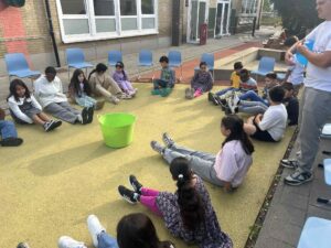Op onze eerste dag deden we spelletjes om elkaar beter te leren kennen. De ballon in de emmer krijgen was wel niet makkelijk. Er was zelfs een bingo over onze juffen en meester! Nu kennen wij hen ook beter.